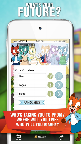 MASH to zabawna i rozrywkowa gra, która próbuje przewidzieć twoją przyszłość. Obejmuje różne aspekty twojego życia, w tym twój małżonek, praca, dochody i miejsce zamieszkania. Gra pozwala ci grać w klasyczną wersję MASH i oferuje również możliwość pobrania nowych historii, aby rozszerzyć swoje doświadczenie z rozgrywką.